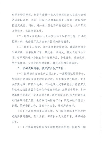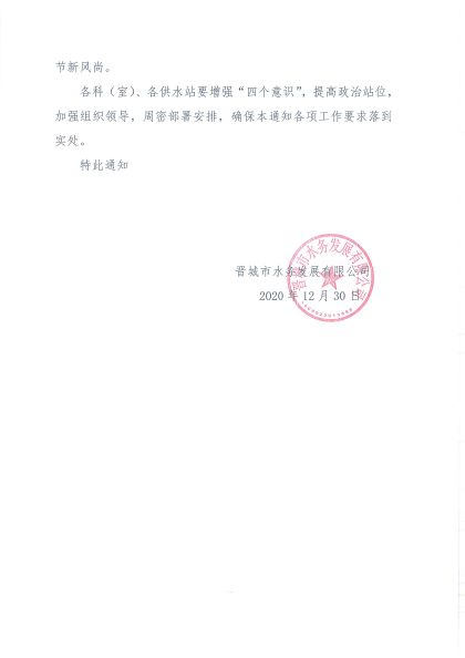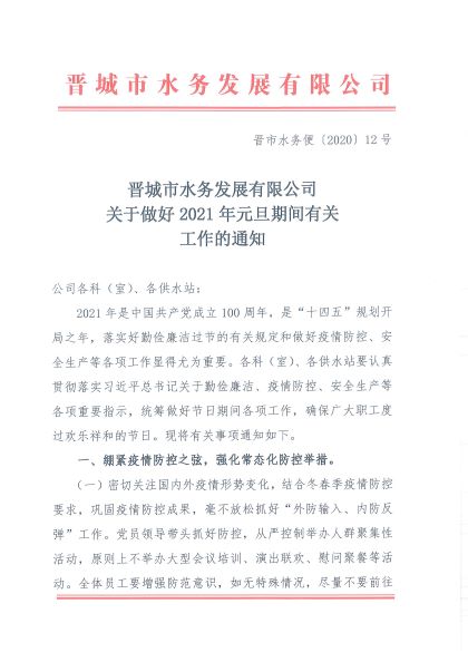 晉城市水務(wù)發(fā)展有限公司 關(guān)于做好2021年元旦期間有關(guān)工作的通知