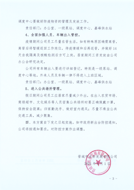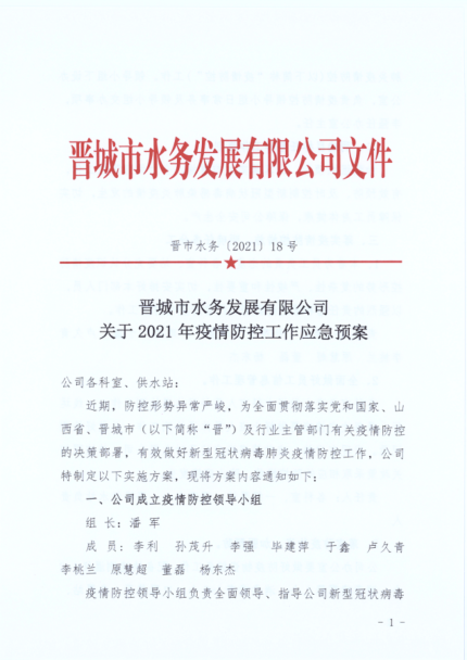 晉城市水務(wù)發(fā)展有限公司關(guān)于2021年疫情防控工作應急預案